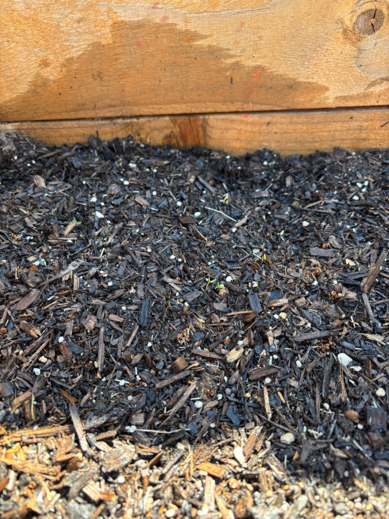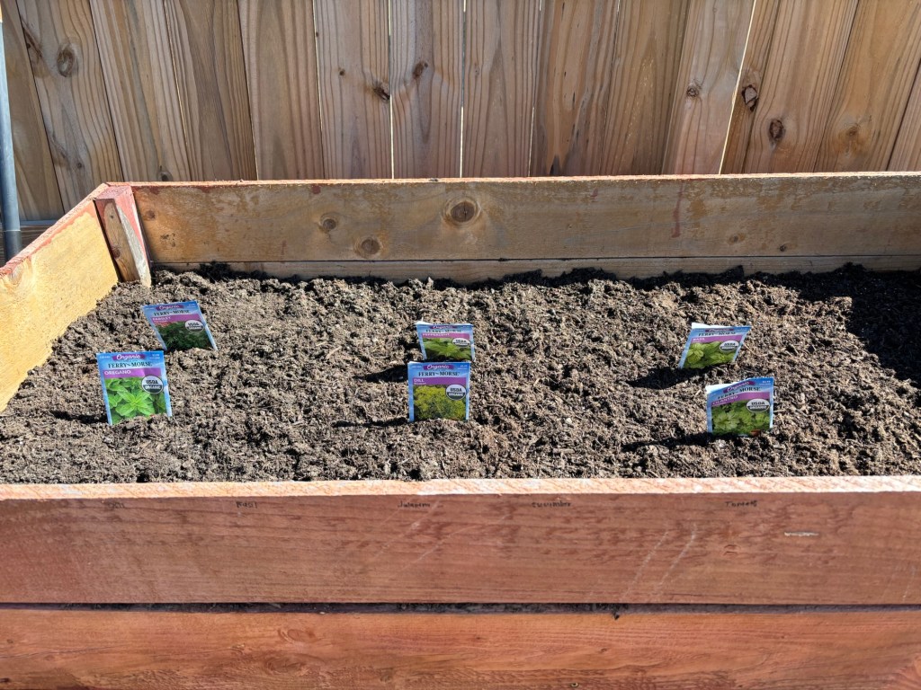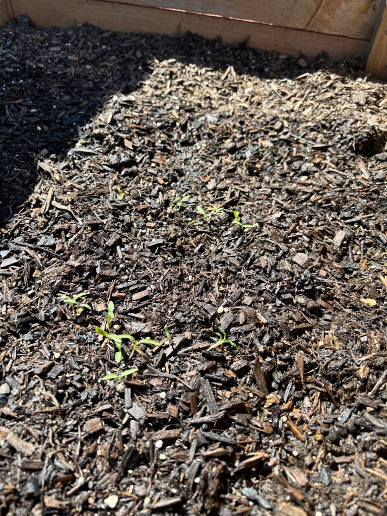 It looks like a few sprouts in the herb garden survived the freeze we had yesterday and the day before. Unfortunately, it looks like my tomatoes and my okra bit the dust. Whatever doesn’t resprout by Good Friday will get sown again!