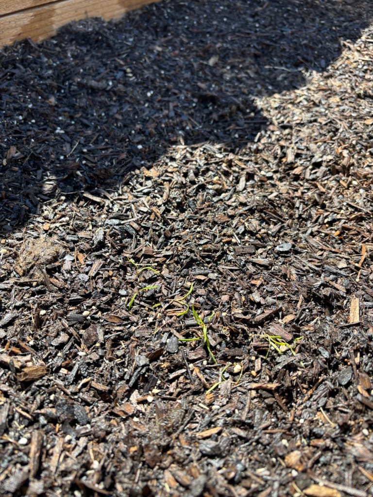 The first sprouts are poking through! One week after planting, a two-day rainstorm came through and gave the garden just what it needed to kick off.